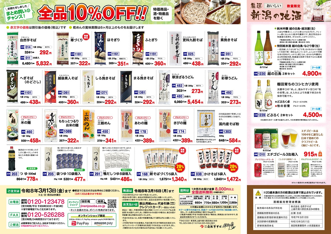 ○乾麺(そば・うどん・雑穀麺・米の麺・そば粉・つゆ)10% OFF